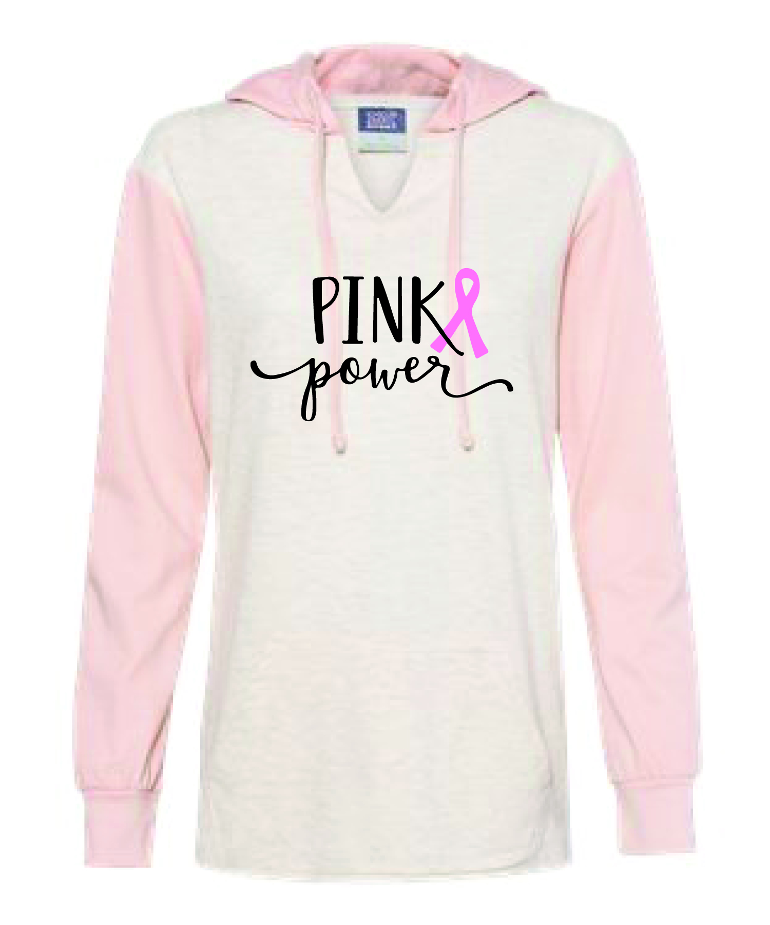 PINK POWER HOODIE (20145 Women’s French Terry Hooded Pullover with Colorblocked Sleeves)